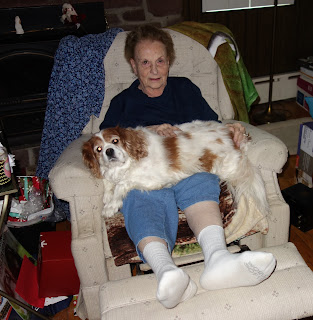 Then picked up my mom and headed over to my MIL's house to heat up our home-style ham, mashed potatoes & gravy, green beans with bacon, corn, and rolls ...